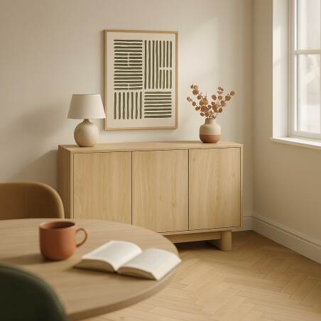 Aparador efecto madera 3 puertas 120 cm estilo escandinavo