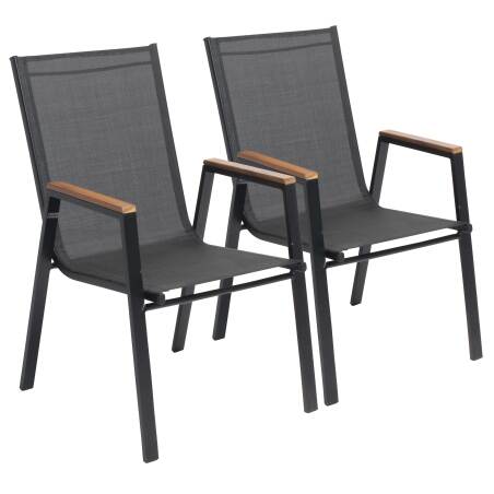 Descubra este lote de 2 sillas de jardín con reposabrazos, perfectas para crear un espacio exterior elegante y funcional. Las sillas cuentan con una estructura de aluminio y un tablero de listones de madera de acacia, que ofrecen la combinación perfecta de durabilidad y belleza natural. Con una altura de 94 cm, una profundidad de 62 cm y una anchura de 56 cm, estas sillas ofrecen un asiento espacioso y cómodo. La altura del asiento de 44 cm y la altura de los brazos de 64 cm proporcionan el apoyo adecuado para una relajación óptima. Además, la anchura del asiento de 48 cm permite sentarse cómodamente a personas de distintos tamaños. La función apilable de estas sillas las hace prácticas y fáciles de guardar cuando no se utilizan, ideales cuando el espacio de almacenamiento es limitado. Gracias a su robusta construcción, estas sillas son adecuadas para un uso intensivo en exteriores. Resisten las inclemencias del tiempo y están construidas para durar, permitiéndole disfrutar de agradables momentos en su jardín durante muchos años.