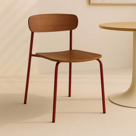 Descubra nuestro lote de dos sillas, donde la robustez atemporal del acero se une a la estética natural de la madera para lograr una combinación perfecta de funcionalidad y diseño. Ideal tanto para interiores domésticos como para espacios profesionales, este juego de sillas ha sido diseñado para ofrecer una durabilidad óptima y un estilo moderno. La estructura portante de cada silla está forjada en acero macizo, lo que garantiza una estabilidad impecable y una larga vida útil, al tiempo que es capaz de soportar un peso máximo de 110 kg. Es la base ideal para un uso regular e intensivo. Para el respaldo y el asiento, se ha elegido el dúo atemporal de sauce y abedul por su ligereza y resistencia. Estos elementos se realzan con una chapa de fresno de 15 mm de grosor, que añade una dosis de sofisticación y un veteado único que realzará el encanto de su habitación. La comodidad del respaldo está asegurada por sus generosas dimensiones de 36 cm de alto y 47 cm de ancho, que prometen un apoyo perfecto. Las proporciones del asiento están pensadas para el bienestar, con una altura ideal de 47 cm, una anchura de 42 cm y una profundidad de 43 cm. La silla mide 78 cm de altura, 46 cm de anchura y 52 cm de profundidad, lo que ofrece un equilibrio perfecto entre espacio y comodidad. Otra característica de estas sillas es su capacidad para apilarse, lo que proporciona una solución de almacenamiento práctica y que ahorra espacio. Este detalle resulta especialmente ventajoso para espacios que requieren una configuración flexible y una optimización del espacio, como zonas pequeñas o espacios comerciales. Diseñadas para satisfacer las exigencias de un uso frecuente, estas sillas combinan sin esfuerzo resistencia y elegancia. Tanto para recibir visitas en un entorno profesional como para realzar su comedor, estas sillas son una mezcla perfecta de calidad, comodidad y estilo moderno.