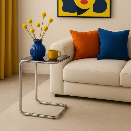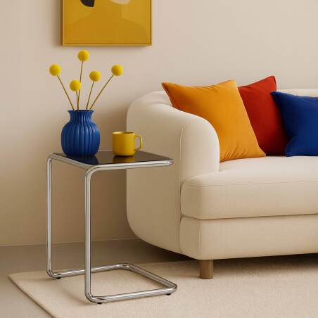 Mesa auxiliar de cristal templado cuadrada 50x46 cm