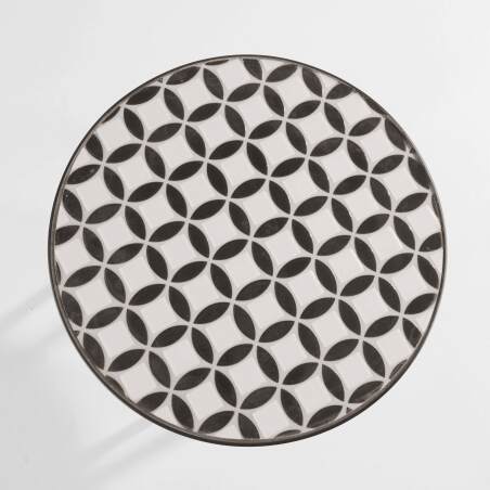 ¿Busca una mesa de centro para decorar su casa o su invernadero? Elija la mesa de centro motivo MOSAIC. Pertenece a la colección TIVOLI y tiene una estructura de acero con revestimiento en polvo negro. Esto le confiere una gran robustez. Su tablero redondo con motivos y sus patas inclinadas prometen momentos de convivencia. Invertir en este mueble de interior es una buena idea, ya que le durará mucho tiempo. Tratado para resistir a la corrosión, conservará su bonito aspecto. ¿Quiere crear un espacio de convivencia? Haga de esta mesa el centro de su decoración. Tiene cabida en el centro de su salón o como mesa auxiliar. Incluso en un balcón de pocos metros cuadrados, causará sensación. Mención especial para los que han optado por una decoración de estilo industrial.