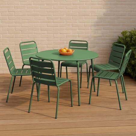 Mesa de jardín redonda de metal Ø120 cm y 6 sillas