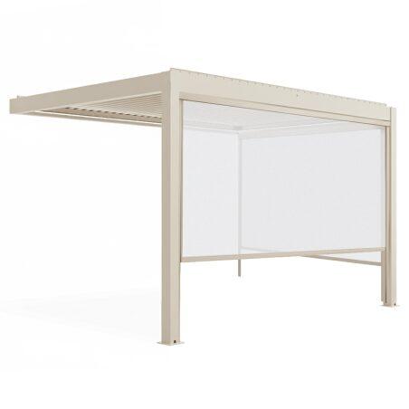 - Descripción Pérgola bioclimática 4x3 m adosada motorizada en aluminio crema con iluminación LED y con toldo