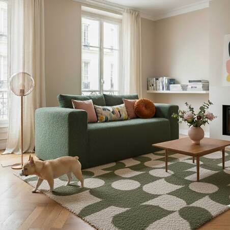 - Descripción Sofá 2 plazas en tejido de rizo con cojínes