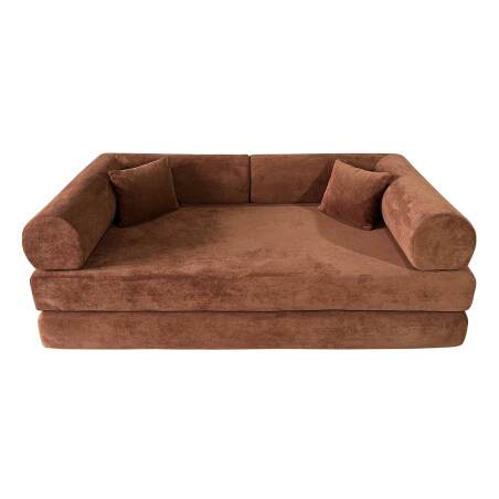 El sofá cama WENDY de 2 plazas combina comodidad y practicidad con sus generosas dimensiones de 206 x 102 x 67 cm (largo x ancho x alto), ofreciendo una altura de asiento de 40 cm y una anchura útil sin reposabrazos de 148 cm. Diseñado para optimizar el espacio, cuenta con dos respaldos de espuma de alta resiliencia (32 kg/m³) y un relleno interior de espuma de poliuretano de la misma densidad, lo que garantiza un soporte firme. Su tapizado de tejido 100 % poliéster de 370 g/m² garantiza una buena resistencia y una agradable suavidad al tacto, mientras que los cojines de 35 x 35 cm cuentan con fundas lavables para un fácil mantenimiento. Su robusta estructura descansa sobre un armazón de acero de cuatro patas, lo que garantiza su estabilidad. Perfecto para un salón moderno, este sofá cama WENDY combina un diseño elegante, funcionalidad y un confort óptimo.