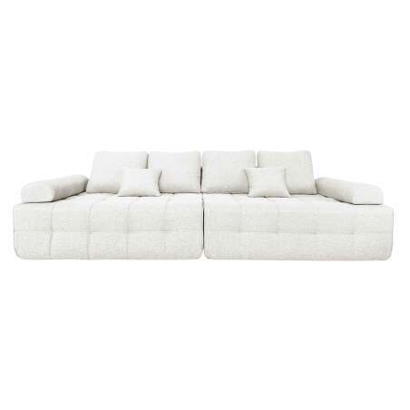 El sofá SNUGGY de 4 plazas consta de dos módulos modulares que se ensamblan fácilmente para crear un espacio acogedor y espacioso (L282 x P112 x H65 cm) con una altura de asiento de 41 cm. Su estructura, que combina espuma de alta resiliencia (32 kg/m³) y muelles ensacados con base antideslizante, garantiza un confort duradero y una excelente estabilidad. Tapizado en tejido efecto lino de 340 g/m² (95 % poliéster, 5 % nailon), aporta un toque elegante y natural a tu interior. El cojín, el respaldo y las fundas decorativas son desenfundables y lavables para un fácil mantenimiento. Con una anchura de 222 cm sin reposabrazos y una altura de 56,5 cm con reposabrazos, este sofá de 4 plazas ofrece un confort óptimo para toda la familia. Otros módulos SNUGGY también están disponibles por separado, lo que te permite personalizar y adaptar tu espacio según tus necesidades.