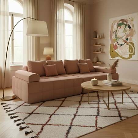 El sofá SNUGGY de 4 plazas consta de dos módulos que se combinan fácilmente para crear una zona de estar cómoda y espaciosa (282 cm de ancho x 112 cm de profundidad x 65 cm de alto), con una altura de asiento de 41 cm. Robusto y seguro, cada asiento soporta hasta 110 kg. Su estructura combina espuma de alta resiliencia (32 kg/m³) y muelles ensacados con una base antideslizante para garantizar una comodidad duradera y una excelente estabilidad. Tapizado en un tejido con efecto lino (95 % poliéster, 5 % nailon) de 340 g/m², aporta un toque elegante y natural a su hogar. Las fundas de los cojines, el respaldo y los cojines decorativos son extraíbles y lavables para un fácil mantenimiento diario. Con un ancho de 222 cm (sin incluir los reposabrazos) y una altura de reposabrazos de 56,5 cm, el sofá ofrece una comodidad óptima para toda la familia. Otros módulos SNUGGY están disponibles por separado para personalizar y adaptar su espacio a sus necesidades. Para facilitar la entrega y la instalación, el sofá se envía envasado al vacío.
