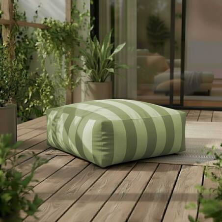 Sofá modular de exterior a rayas para 4 personas con 1 sillón, 2 sillones esquineros y 1 puf
